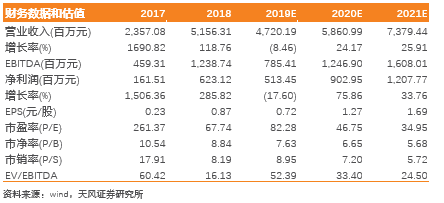 公司數(shù)通市場領(lǐng)先地位進(jìn)一步強(qiáng)化,5G產(chǎn)品持續(xù)批量出貨,中回傳高端產(chǎn)品有望突破。展望未來,公司在高速數(shù)通光模塊行業(yè)龍頭地位穩(wěn)固,云計算資本開支持續(xù)回暖驅(qū)動公司長期成長;5G電信前傳產(chǎn)品批量交付,價值量更高的中回傳領(lǐng)域有望突破,形成數(shù)通+電信雙輪驅(qū)動公司長期成長。預(yù)計公司19-21年歸母凈利潤分別為5.1、9.0、12.1億元,對應(yīng)20年47倍、21年35倍市盈率,維持“增持”評級。